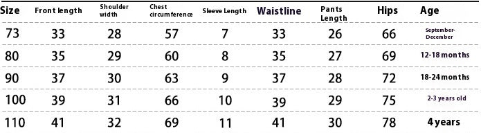 Choose by height: 9–12M / 12–18M / 18–24M / 2–3Y / 4Y (size up if between sizes).